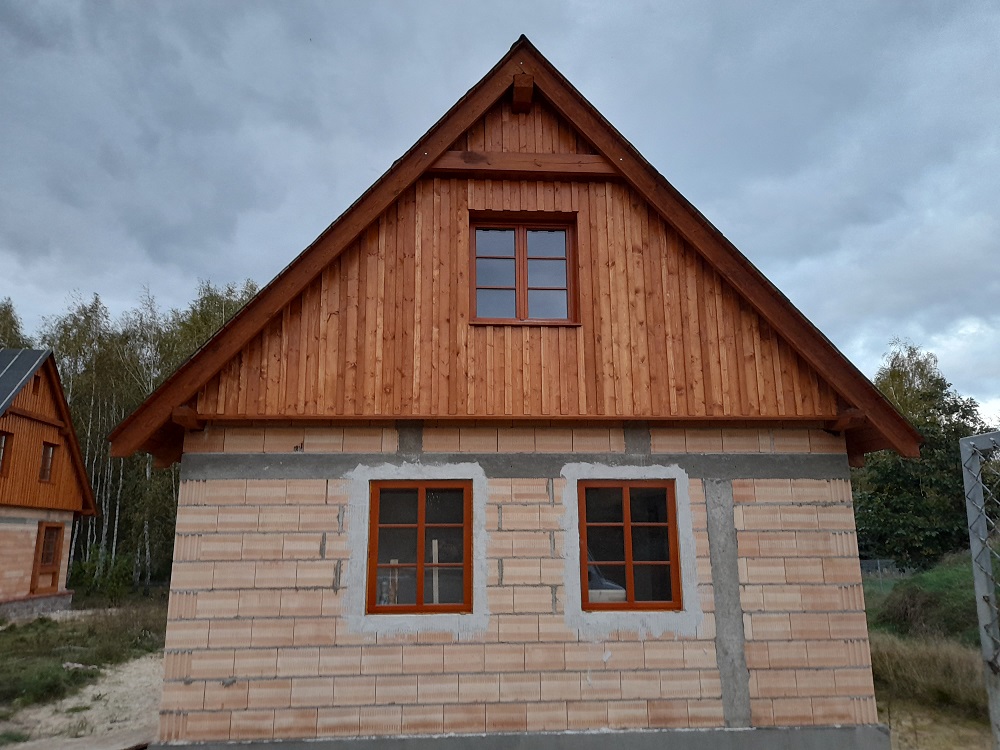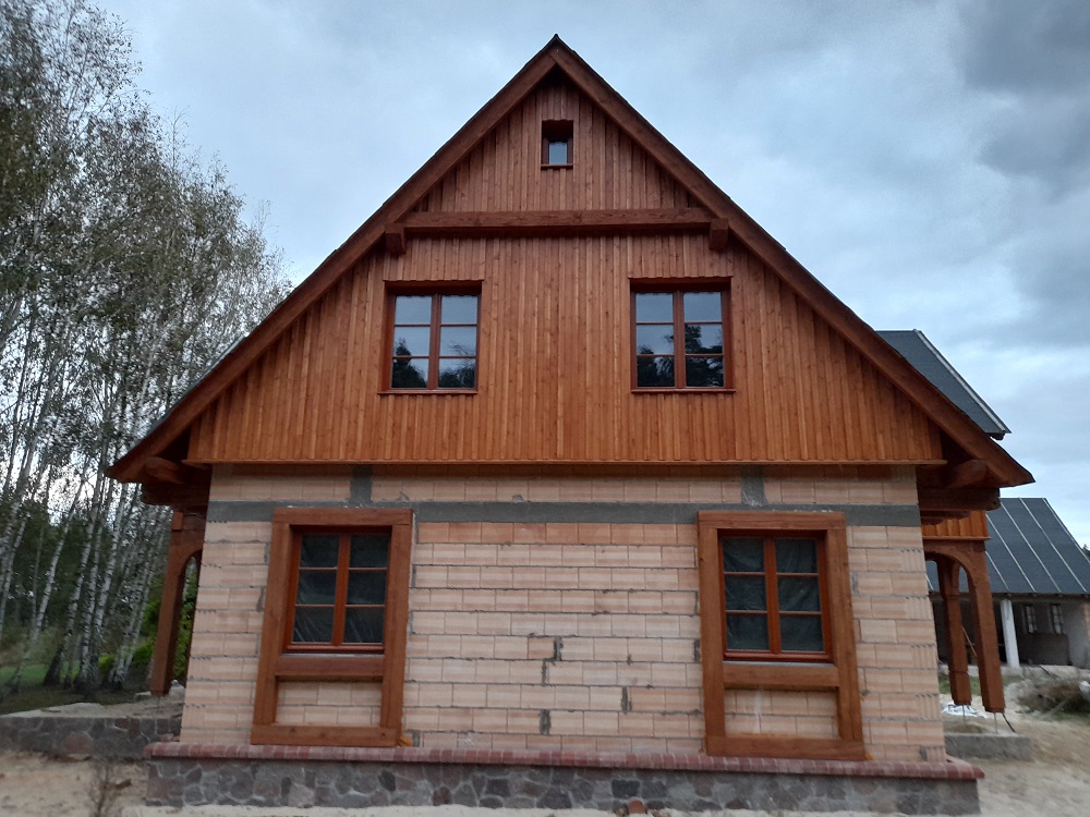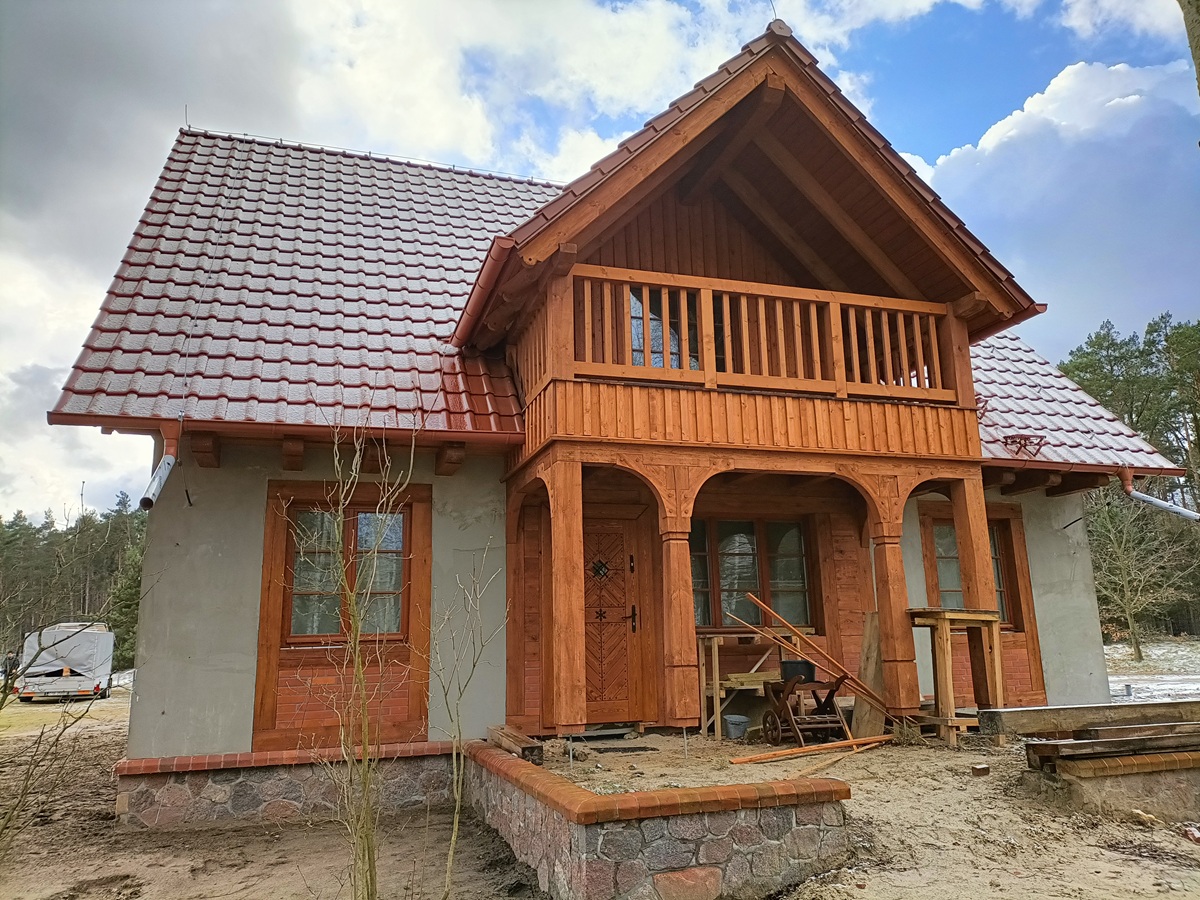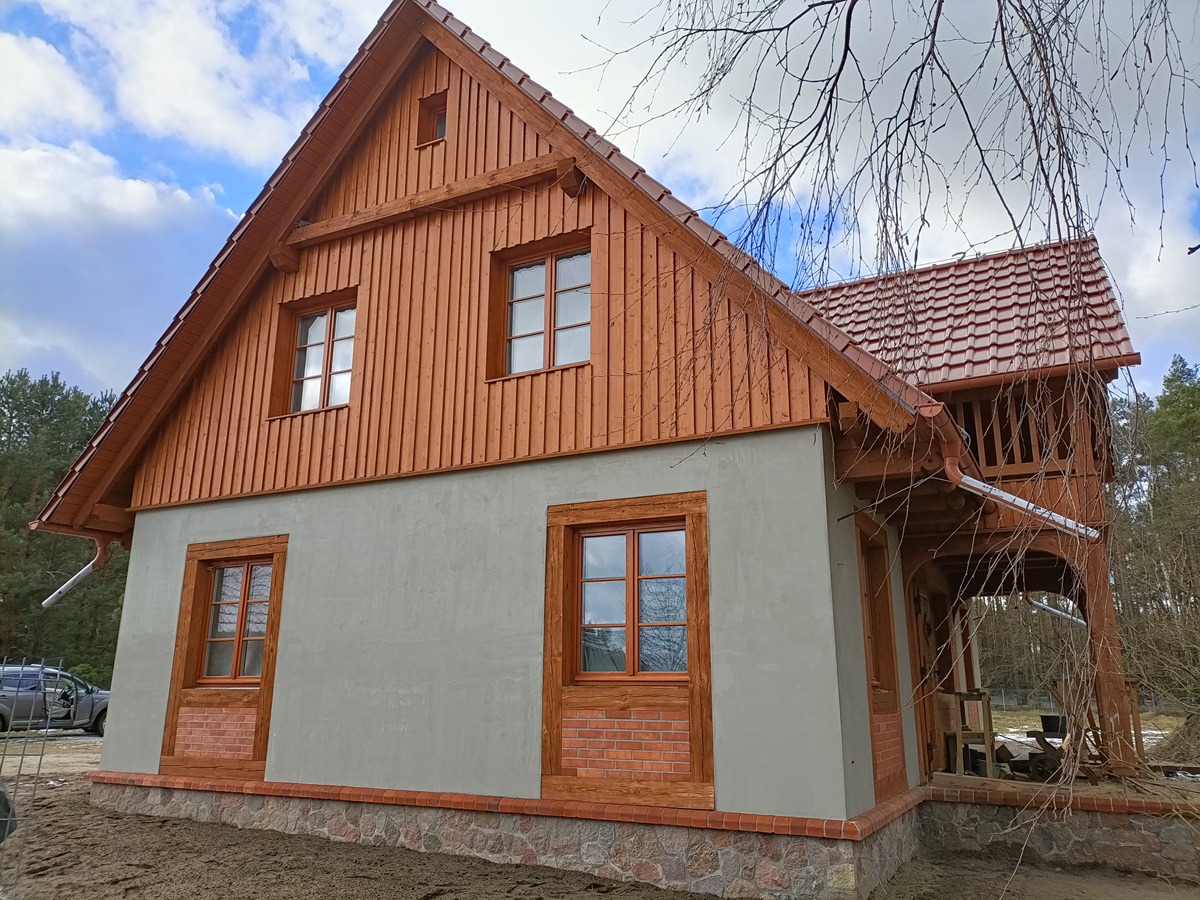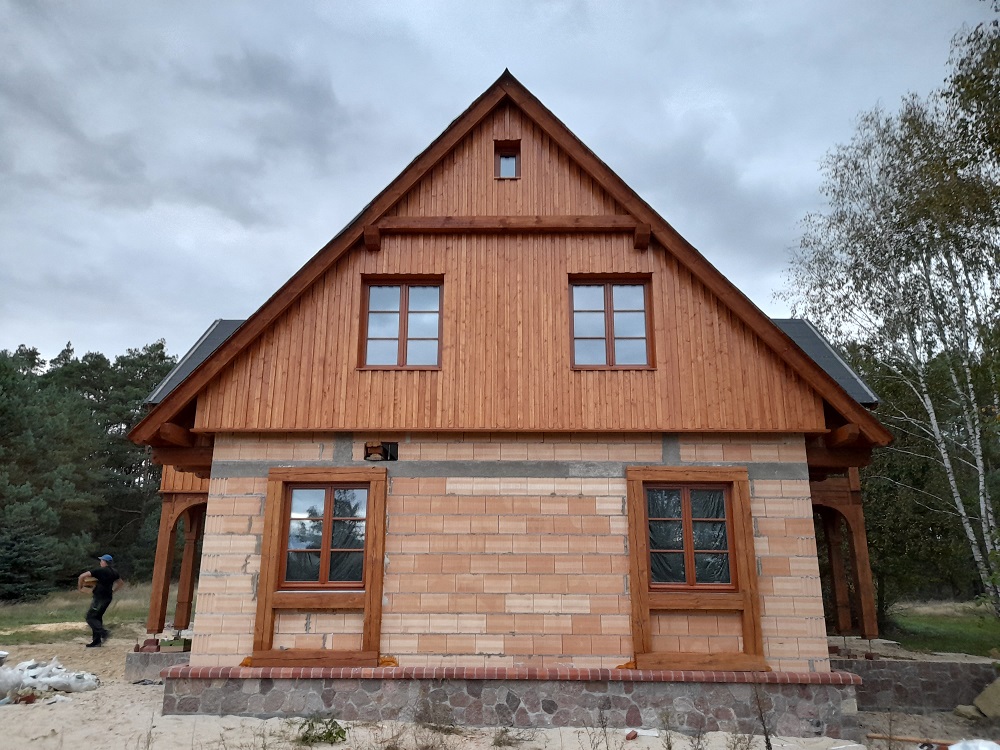 • elementy elewacji z drewna świerkowego na rustykalnym domu