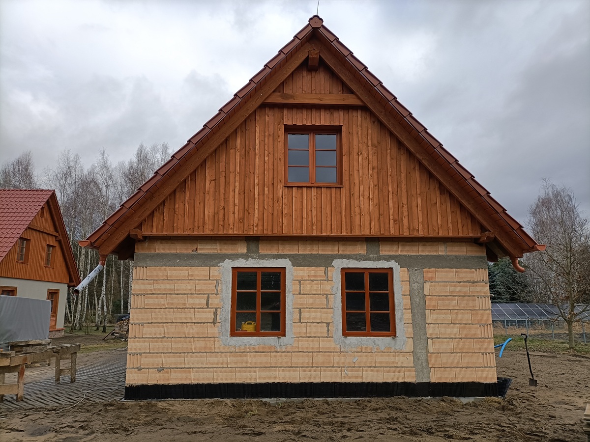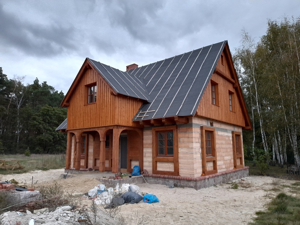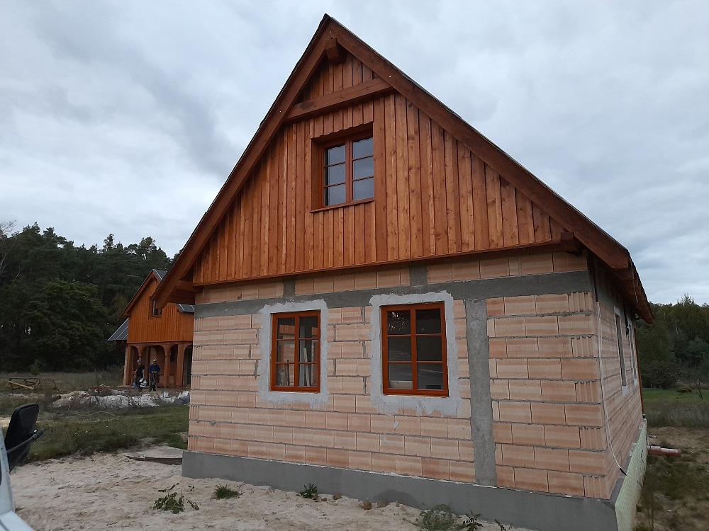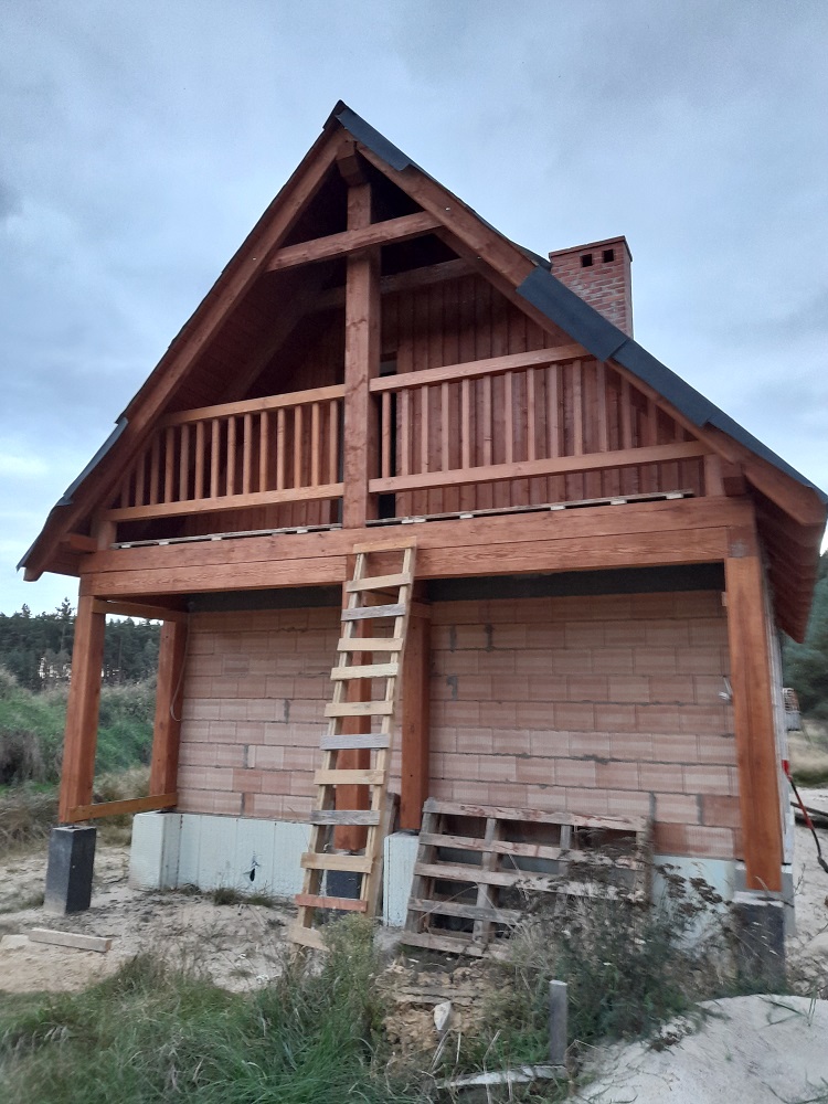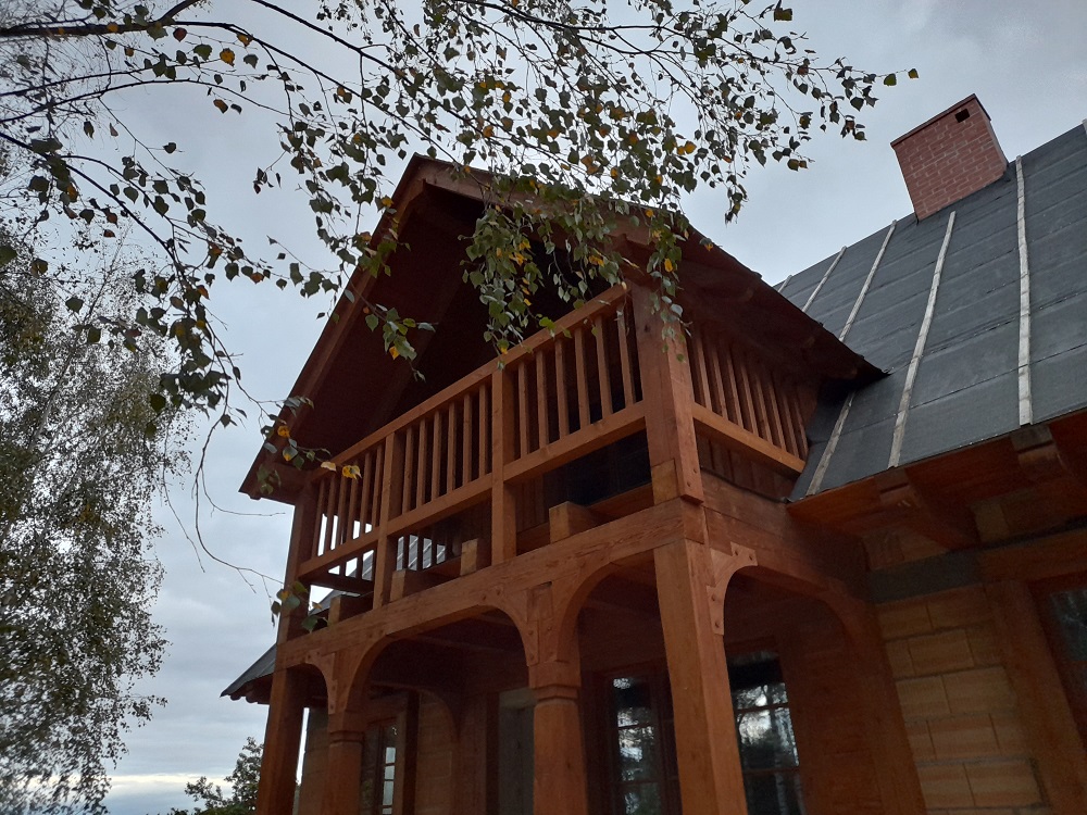 • elementy elewacji z drewna świerkowego na rustykalnym domu