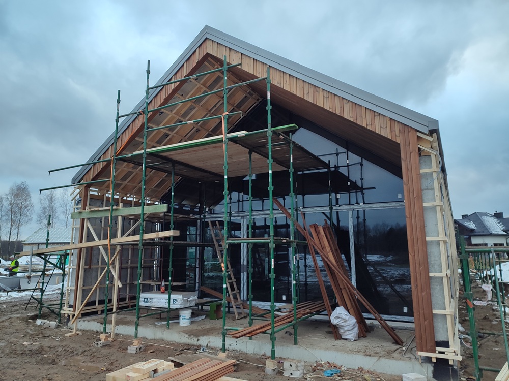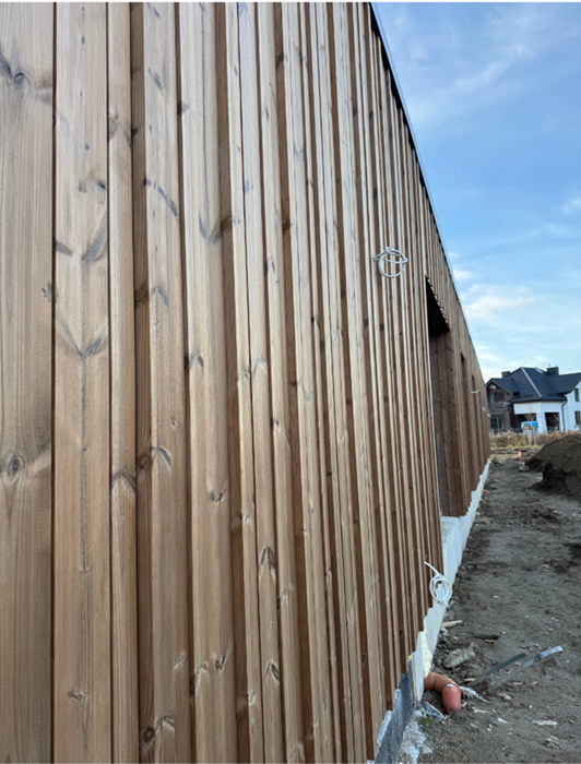 - aby uzyskać efekt 3D, zastosowaliśmy deski elewacyjne o różnej grubości i szerokości,