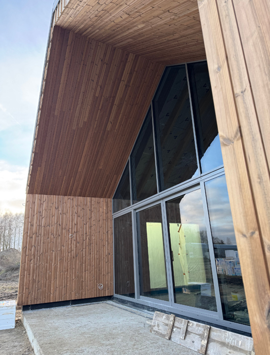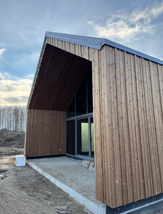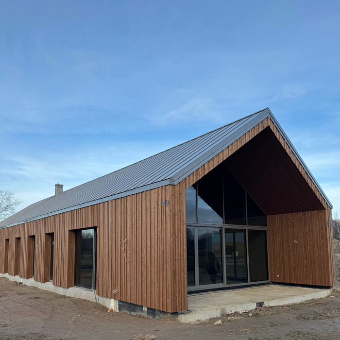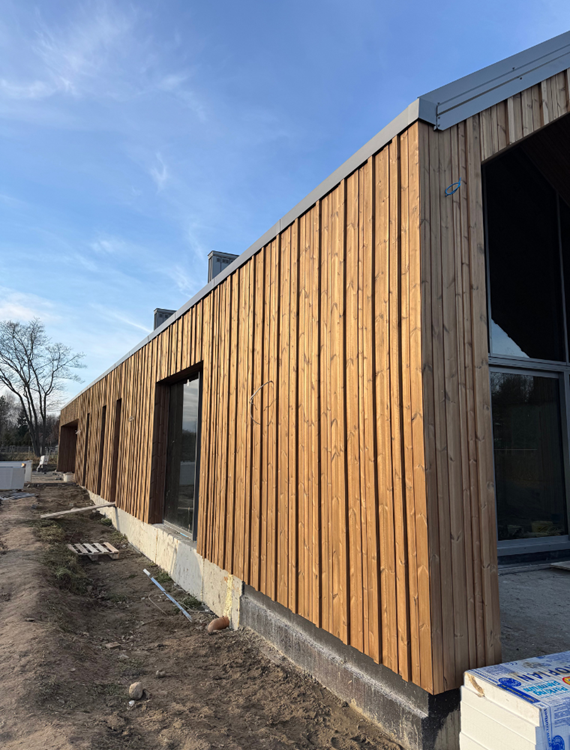 - drewnianą elewację zamontowaliśmy na dwóch domach typu stodoła oraz pobliskiej stajni i ujeżdżalni, gdzie dodatkowo zamocowaliśmy na ścianach cegły licówki
